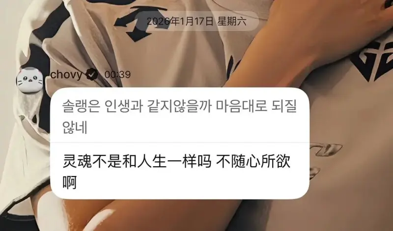 小虎排位玩泰坦无暇赴死,chovy被坑输后发泡泡(面向粉丝的付费聊天)吐槽单排真像人生,由不得自己